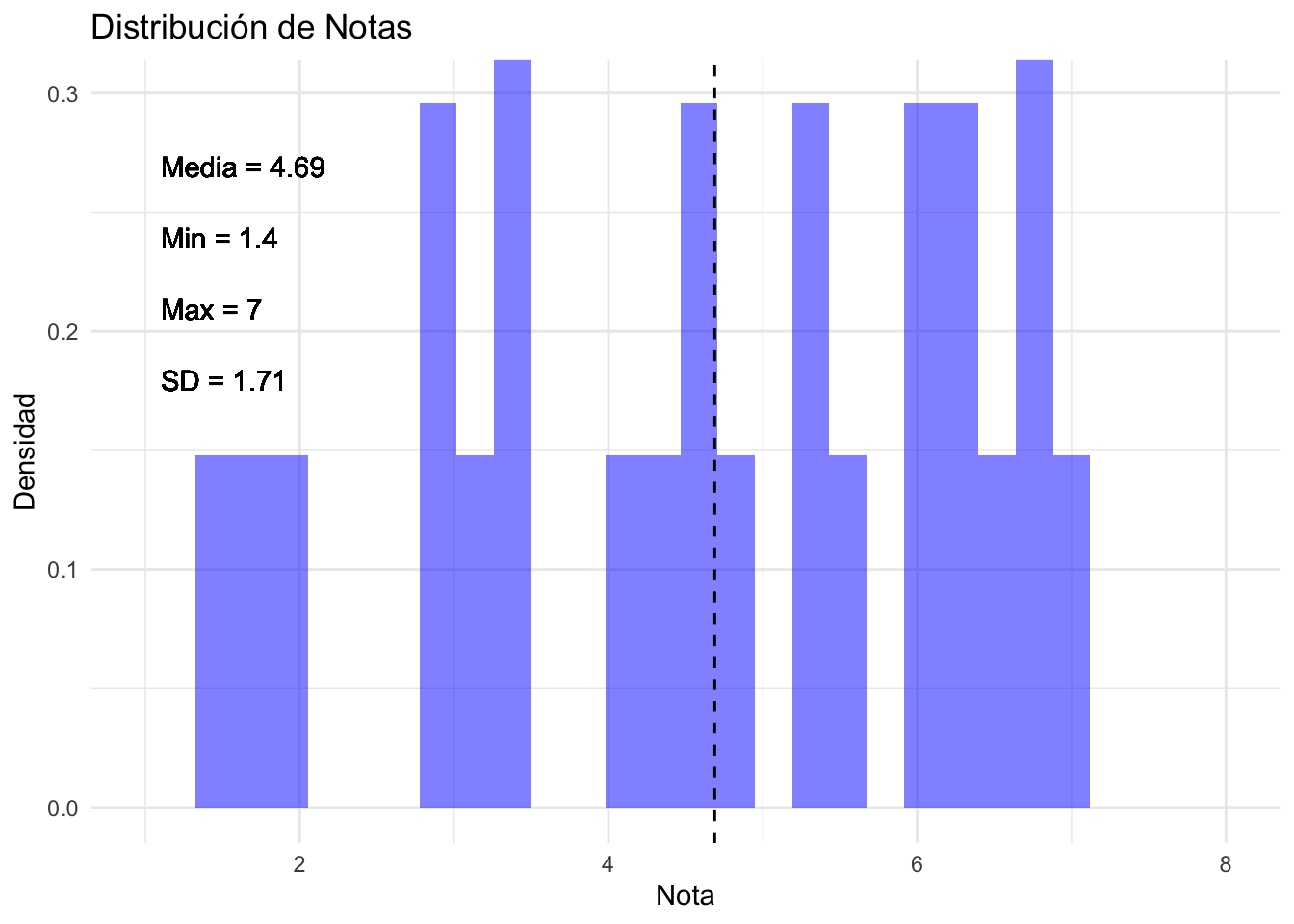El siguiente gráfico muestra la distribución de las notas:
