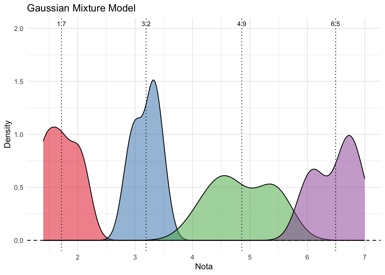 Usando un Gaussian mixture model encontramos 4 clusters de notas: