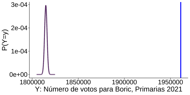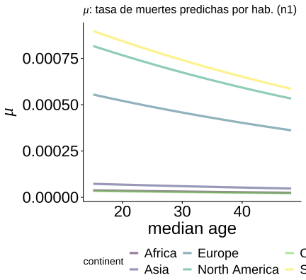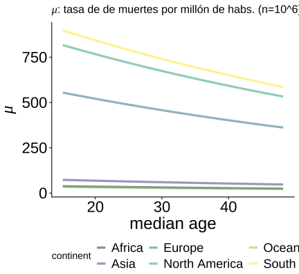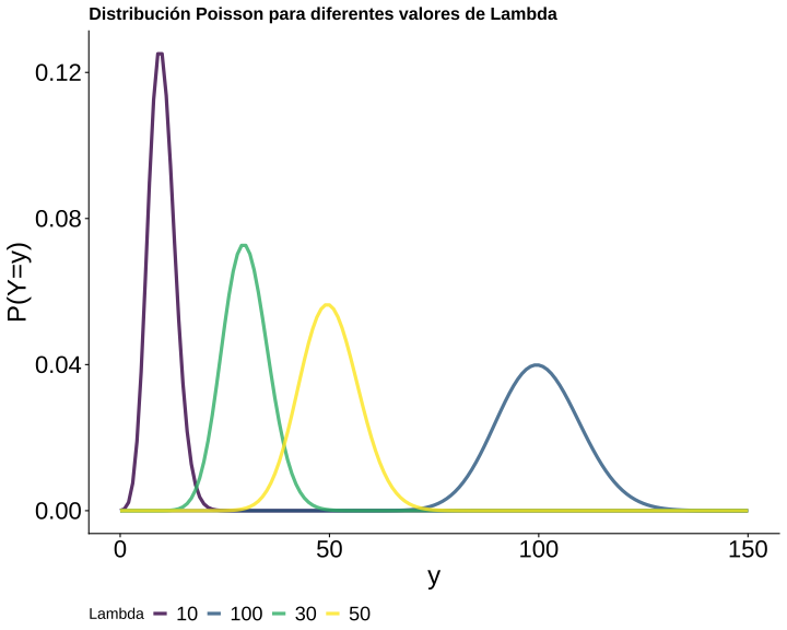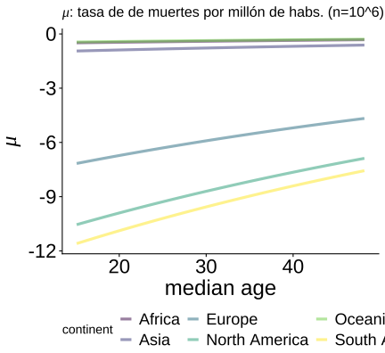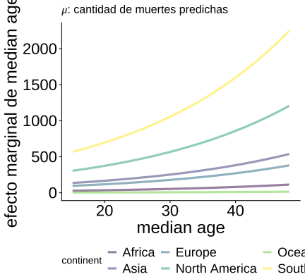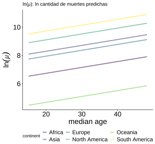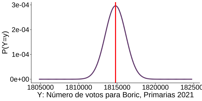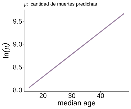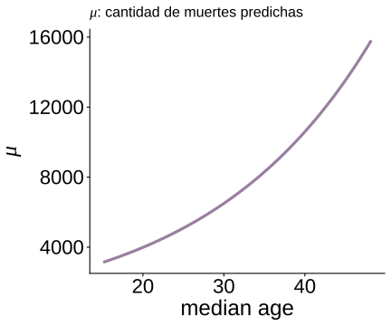 Profesor Asistente, Sociología UC ] --- class: inverse, center, middle # Regresión Poisson --- class: inverse, center, middle ## Distribución Poisson --- ## Distribución Poisson -- En las primarias presidenciales 2021 Gabriel Boric obtuvo 1.814.809 votos. -- - Asumamos que este recuento es una manifestación de una variable aleatoria: si repitieramos la elección, bajo exácmente las mismas condiciones, el número de votos no sería exáctamente el mismo. -- - Llamemos `\(Y\)` la variable aleatoria consistente en la "cantidad de votos para Boric". -- - `\(Y\)` puede ser descrita con una distribución Poisson: `\(Y \sim \text{Poisson}(\mu)\)` -- - donde `\(\mu\)` corresponde al valor esperado de la variable: el número de votos promedio obtenido por Boric. - Supongamos que el `\(\mu=1.814.800\)` -- <br> -- .bold[Pregunta]: ¿Cuál es la probabilidad de observar un determinado número `\(y\)` de votos? -- .content-box-yellow[ `$$\quad \quad \mathbb{P}(Y=y) = \frac{\mu^{y}}{y!} e^{-\mu}, \quad \text{donde } \quad y \in \{0,1, 2, 3, \dots \} \quad \text{y } \mu>0$$` ] --- ## Distribución Poisson $$ \text{En nuestro caso: } \quad \mathbb{P}(Y=y) = \frac{\mu^{y}}{y!} e^{-\mu} = \frac{1.814.800^{y}}{y!} e^{1.814.800} $$ .center[ <!-- --> ] <br> -- Por ejemplo: `\(P(Y=1) = \frac{1.814.800^{1}}{1!} e^{-1.814.800} \approx 0\)` --- ## Distribución Poisson - José Antonio Kast obtuvo 1.961.122 votos en las primarias presidenciales 2021. -- - ¿Cuál es la probabilidad de que Boric hubiera obtenido 1.961.122 votos si su votación es una manifestación de una variable aleatoria `\(Y \sim \text{Poisson}(\mu=1.814.800)\)`? -- `\(P(Y=1.961.122) = \frac{1.814.800^{1.961.122}}{1.961.122!} e^{-1.814.800} \approx 0\)` .center[ <!-- --> ] --- ## Distribución Poisson .img-left[ <!-- --> ] -- .pull-right[ Algunas características: - Sesgado hacia la derecha, pero sesgo decrece cuando aumenta `\(\mu\)` - Centrado en torno a `\(\mu\)`. - Dispersión aumenta cuando aumenta `\(\mu\)`. ] -- .pull-right[ Específicamente, - Si `\(Y_{i} \sim \text{Poisson}(\mu)\)`, entonces: - `\(\mathbb{E}(Y) = \mu\)` - `\(\mathbb{Var}(Y) = \mu\)` y, por tanto, `\(\sigma= \sqrt{\mu}\)`. ] <style type="text/css"> .pull-right ~ * { clear: unset; } .pull-right + * { clear: both; } </style> --- class: inverse, center, middle ## Fundamentos teóricos de regresión Poisson --- ## Estructura de un modelo de regresión Poisson Regresión Poisson es la herramienta estándar para modelar variables de conteo (e.j. cantidad de accidentes, tiempos de espera en línea, etc.). -- Podemos pensar en un modelo de regresión Poisson de la siguiente forma: <br> -- .bold[Configuración] - Tenemos `\(n\)` observaciones independientes: `\(i = 1, \dots, n\)` -- - Para cada observación observamos datos `\(y_{i}, \dots , y_{n}\)` que actúan como variable dependiente. -- - `\(y_{i} \in \mathbb{Z}^{*}\)`, es decir, es un entero no-negativo, tal que: `\(y_{i} \in \{0,1, 2, 3, \dots \}\)` -- - Asumimos que estos datos son realizaciones de `\(n\)` variables aleatorias Poisson con parámetros desconocidos: `\(Y_{i} \sim \text{Poisson}(\mu_{i})\)` -- - Asumimos que dichos parámetros (media) pueden variar de observación en observación. - Podemos describir estos parámetros en función de covariables. --- ## Estructura de un modelo de regresión Poisson Específicamente, una regresión Poisson modela la media condicional de una variable de recuento de la siguiente manera: .content-box-yellow[ `$$\mathbb{E}(y_{i} \mid x_{1i}, \dots, x_{ki}) = \mu_{i} = e^{\eta_{i}} \quad \quad \text{donde} \quad \quad \eta_{i} = \beta_{0} + \beta_{1}x_{1i} + \dots + \beta_{k}x_{ki}$$` ] <br> -- .bold[Importante] notar que: -- - El rango de la función exponencial, `\(e^x \in (0, \infty+)\)`, asegura que la media condicional predicha por un modelo de regresión Poisson siempre sea .bold[estrictamente positiva]. -- - `\(x_{1} \dots x_{k}\)` son predictores o variables independientes -- - `\(\beta_{1} \dots \beta_{k}\)` son los respectivos "efectos" de los predictores sobre `\(\eta_{i}\)` -- - `\(\mu_{i}\)` .bold[no está relacionado linealmente] con sus predictores. --- ## Estructura de un modelo de regresión Poisson Sin embargo, `\(\eta_{i} = \beta_{0} + \beta_{1}x_{1i} + \dots + \beta_{k}x_{ki}\)` si es una función lineal de los predictores. <br> -- Por tanto, es conveniente expresar `\(\eta_{i}\)` en función de `\(\mu_{i}\)`. Si `\(\mu_{i} = e^{\eta_{i}}\)`, entonces ... -- .pull-left[  .content-box-yellow[ `$$\quad \quad \ln \mu_{i} = \eta_{i} = \beta_{0} + \beta_{1}x_{1i} + \dots + \beta_{k}x_{ki}$$` ] ] -- .pull-right[ <br> - En resumen, un modelo de regressión Poisson describe `\(\ln \mathbb{E}(y_{i} \mid x_{1i}, \dots, x_{ki}) = \ln \mu_{i}\)`. - Recordar que esto es distinto de modelar el logaritmo de la variable dependiente: `\(\mathbb{E}(\ln y_{i} \mid x_{1i}, \dots, x_{ki})\)` ] --- ## Regresión Poisson para modelar "tasas" Si bien la regresión Poisson es una herramienta para modelar conteos, muchas veces el verdadero fenómeno de interés es una "tasa". .pull-left[  ] -- .pull-right[ Aumento en número de accidentes en bicicleta puede reflejar dos cosas (no excluyentes): - Aumento de la propensión a sufrir un accidente ("tasa") - Aumento de la cantidad de ciclistas ("exposure") <br> Formalmente: `$$\mu_{i} = \underbrace{n_{i}}_{\text{exposición}} \cdot \underbrace{\theta_{i}}_{\text{tasa}}$$` ] --- ## Regresión Poisson para modelar "tasas" Usando la definición de tasa: `\(\theta_{i} = \frac{\mu_{i}}{n_{i}}\)` -- Podemos modelar la tasa de occurrencia de un evento de la siguiente manera: -- `$$\ln(\theta_{i}) = \ln \bigg(\frac{\mu_{i}}{n_{i}}\bigg) = \beta_{0} + \beta_{1}x_{1i} + \dots + \beta_{k}x_{ki}$$` -- `$$\ln(\theta_{i}) = \ln(\mu_{i}) - \ln(n_{i}) = \beta_{0} + \beta_{1}x_{1i} + \dots + \beta_{k}x_{ki}$$` <br> -- El modelo para la "tasa" puede ser re-expresado como un modelo de conteo: -- .content-box-yellow[ `$$\ln(\mu_{i}) = \ln(\theta_{i}) + \