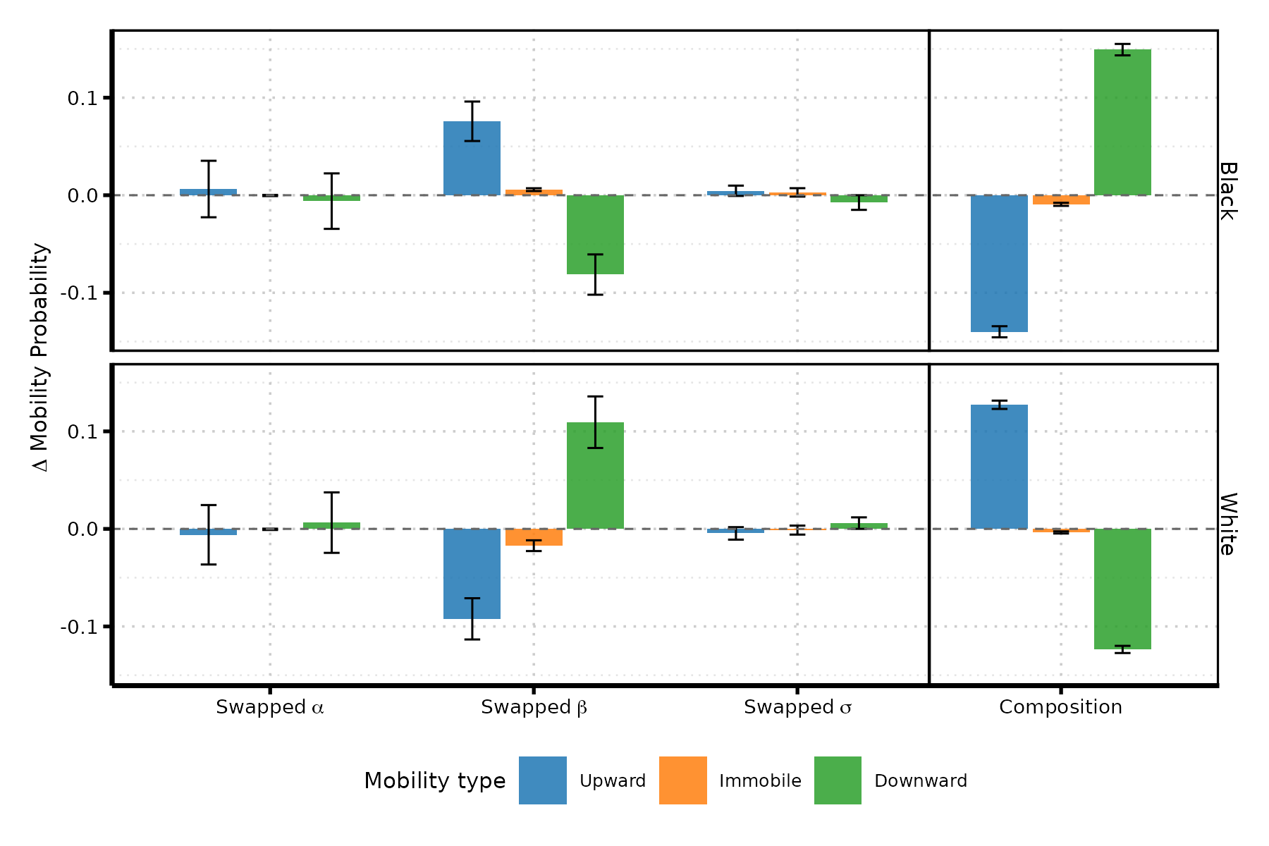 composition — change in probability of mobility type \(k\) induced solely by swapping the parental income distribution: