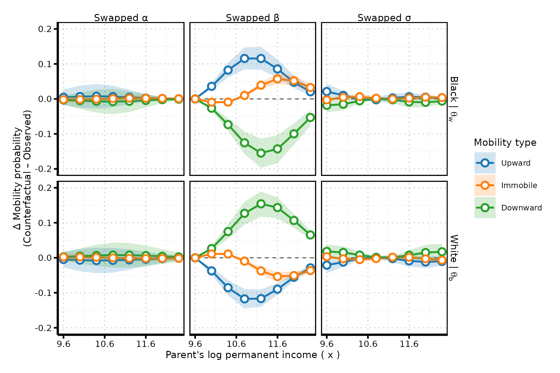 example question: “how much upward mobility would group A experience if, holding everything else constant, it had group B’s level of relative mobility?”